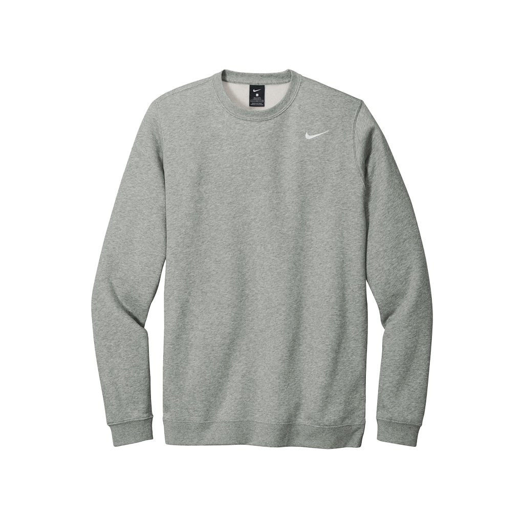 Embroidery will look great on the Nike Men's Dark Grey Heather Club Fleece Crew. The simple design of this crew does not detract from its durability and functionality. Great to wear alone or layer, the brushed back fleece is warm and comfortable for those with an active lifestyle. Add a custom logo to create athleisure wear that can help you enjoy a day at the gym or a late evening run and remain comfortable. For some, adding a company logo will create appropriate employee apparel or a great option as a gift at company outings. The Nike Swoosh is embroidered on the left chest to demonstrate quality, but your custom logo can take things to the next level.