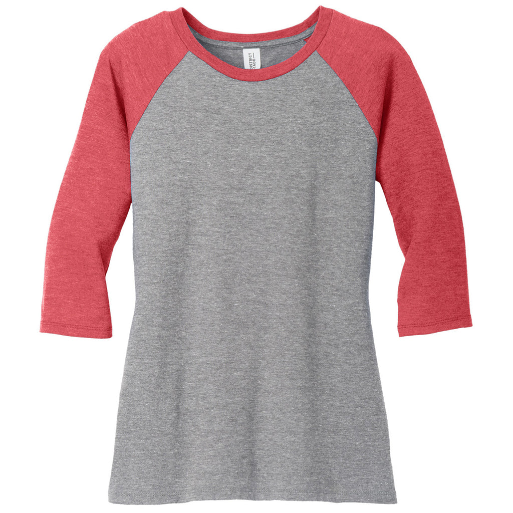 District Women's Red Frost/ Grey Frost Perfect Tri 3/4-Sleeve Raglan