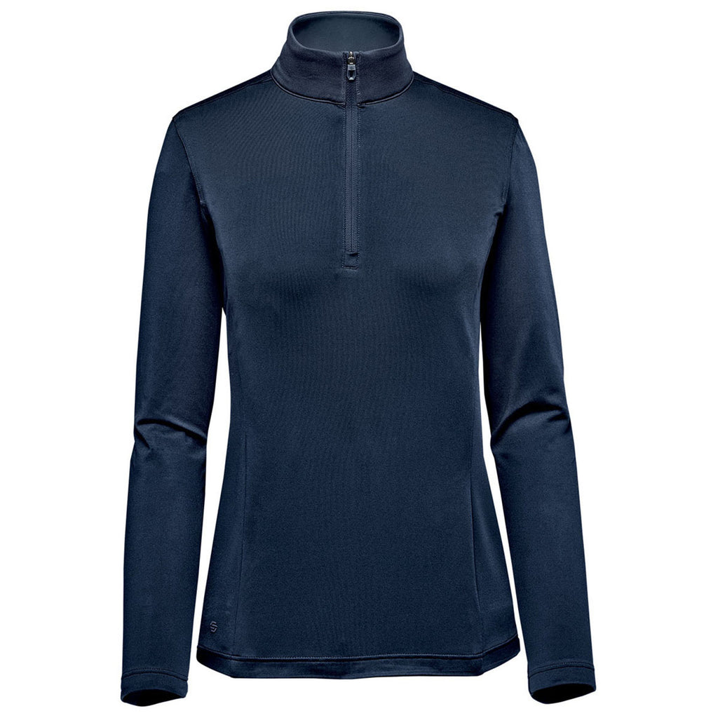 Elevate your corporate style with the embroidered Stormtech Women's Midnight/Dusk Zermatt 1/4 Zip Pullover. The soft, lightweight stretch fabric keeps wearers comfortable during any activity, and the refined cut adds a polished touch. This pullover is perfect for logo embroidery and offers performance warmth and professional appeal, making it ideal for active teams or workplace layering.Corresponding Men's Style: Stormtech Men's Midnight/Dusk Zermatt 1/4 Zip Pullover