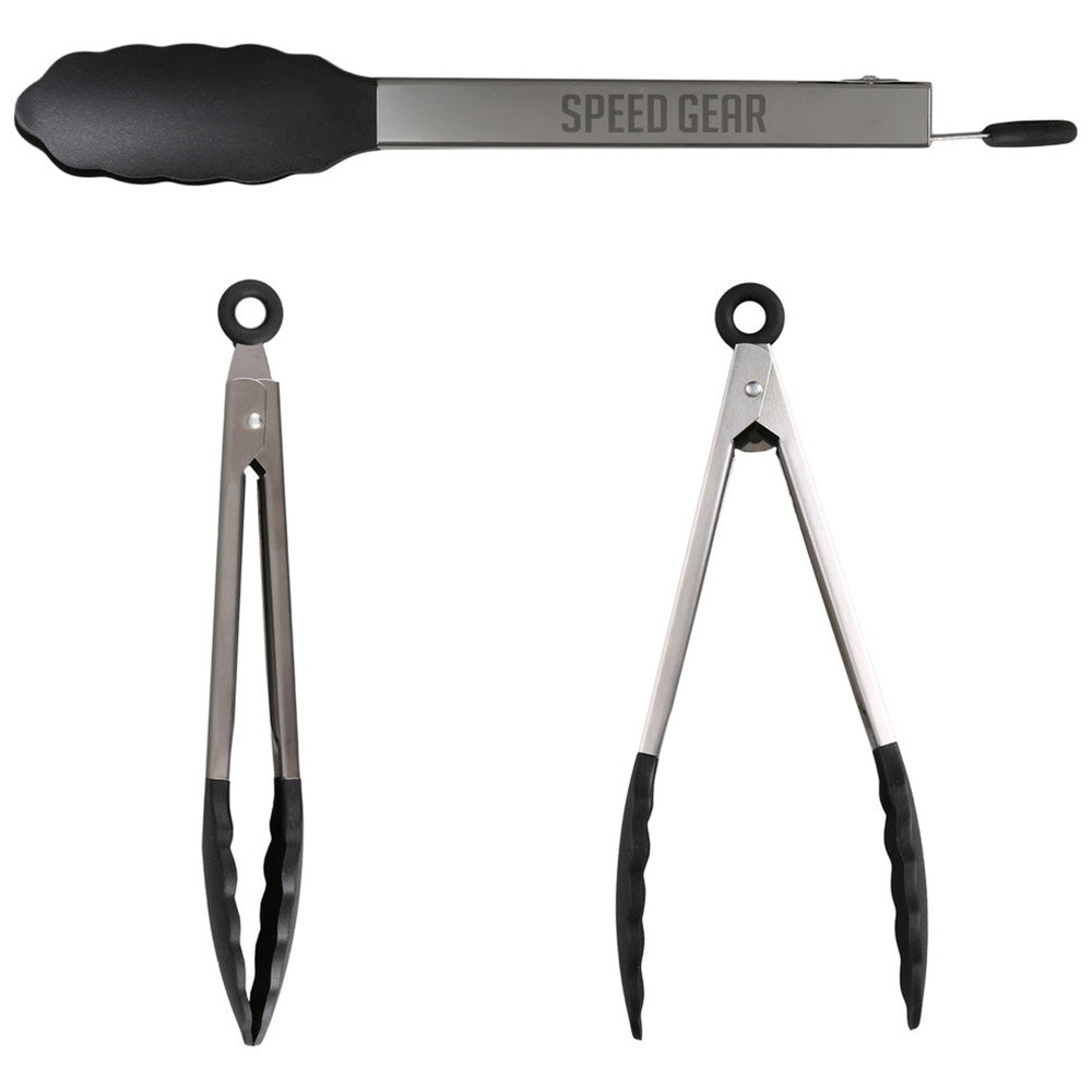Enjoy custom Beacon Black Blaze 9" Stainless & Silicone Tongs whether you are cooking for one, many, or grilling for the entire neighborhood. These stainless steel tongs with silicone ends make it easy to handle hot foods without burning your hands. Order several today to outfit a commercial kitchen, give as gifts, or sale in your store.The minimum order for this product is 100 pieces.