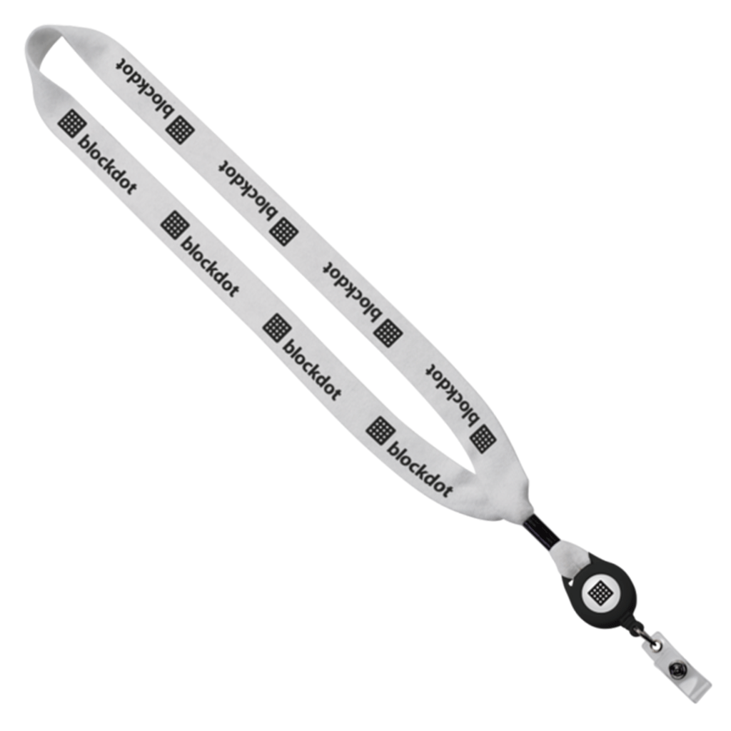 SnugZ White 3/4" Cotton Lanyard with Metal Crimp & Retractable Badge Reel