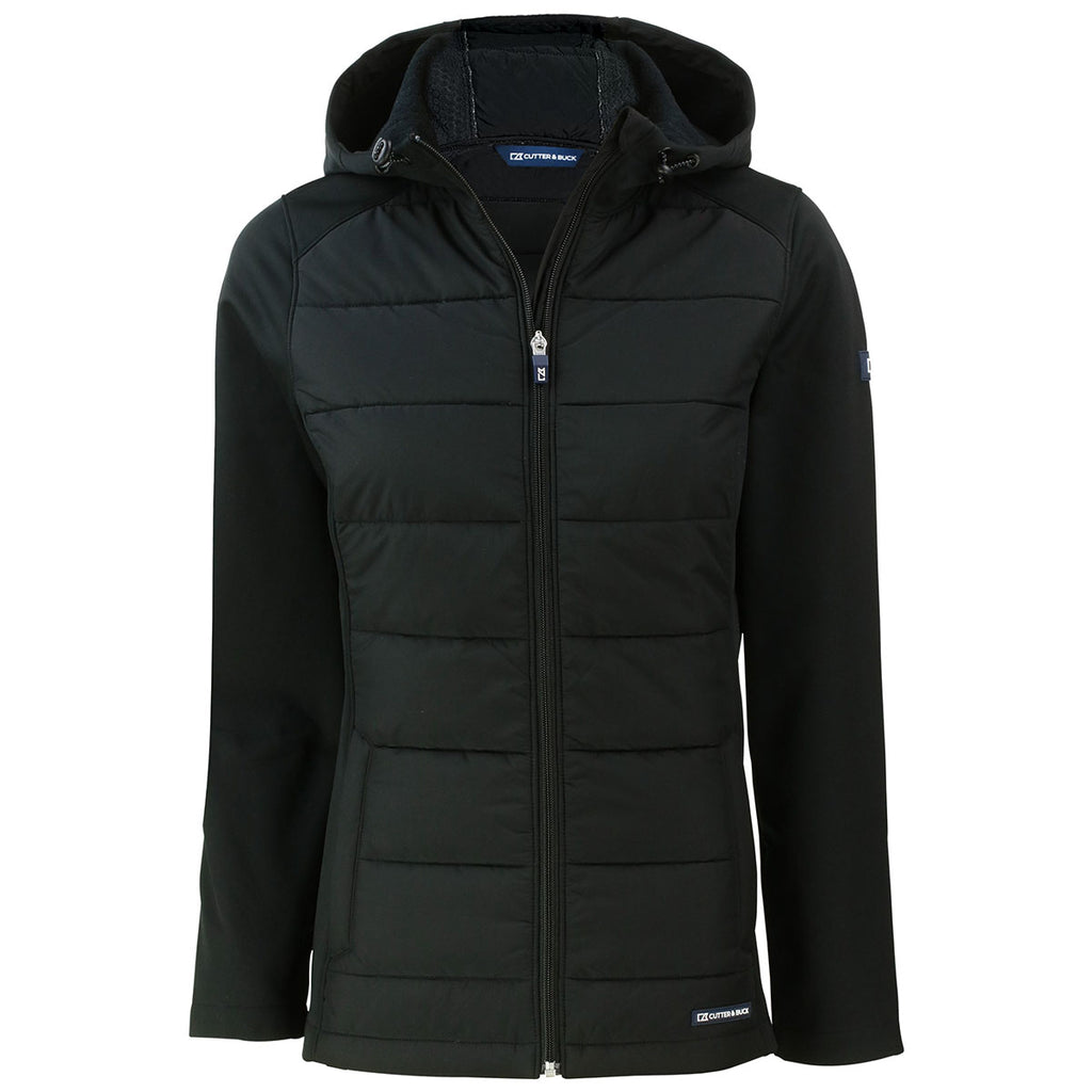 Cutter & Buck Women's Black Evoke Hybrid Eco Softshell Recycled Full Zip Hooded Jacket