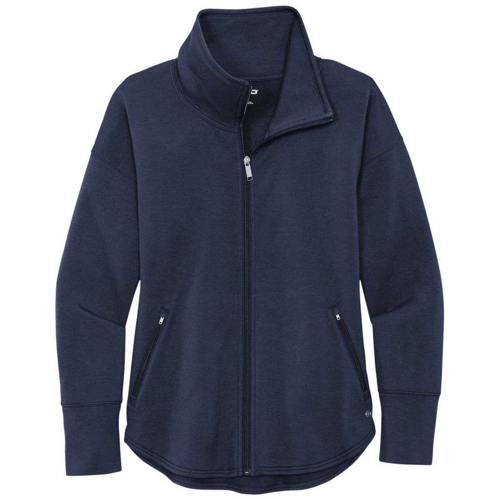 Get moving in a custom logo OGIO Women's River Blue Navy Luuma Full-Zip Fleece that is made for training and working out. The modal, poly, spandex blend fleece will not impair movement whether running on a track of freestyling it in the woods. The gorgeous make of this jacket creates a casual comfort that is simply perfection. A cowl neck keeps you protected when outside and the versatility of this fleece means it can go anywhere you do and still look great. Zippered front pockets are a bonus to the already wonderful fleece that will help keep you going even when you may not feel like it.