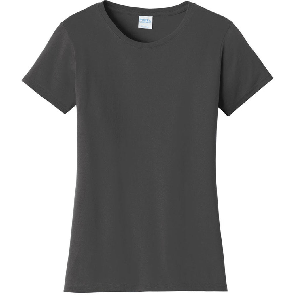 Do moisture laden t-shirts bog you down whenever you need to ramp up the competitive juices? Port & Company Women's Charcoal Fan Favorite Tee contain moisture wicking technology that quickly evaporates perspiration the instant it forms on your skin. The result is a cooling of the skin that invigorates your body. Set-in sleeves allow for more arm movement, which comes in handy on the golf course and tennis court. The super soft fabric endures countless wash and dry cycles, without any of the colors fading. One-hundred percent rugged polyester interlock resists rips and tears. Attach your company logo to the t-shirts to spread the word about your brand.Highlights
