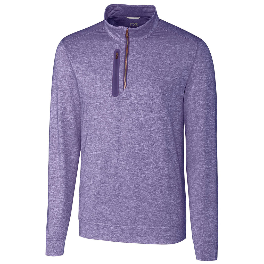 Cutter & Buck Men's College Purple Stealth Heathered Quarter Zip Pullover with a custom logo will be an instant favorite at work, home, and beyond. The pullover offers 50+ UV protection, moisture wicking, and stretch meaning it is perfect for travel, working out, golf, tennis, and much more. Layer with a polo or dress shirt to wear to the office and remain comfortable. Place an order today.Highlights