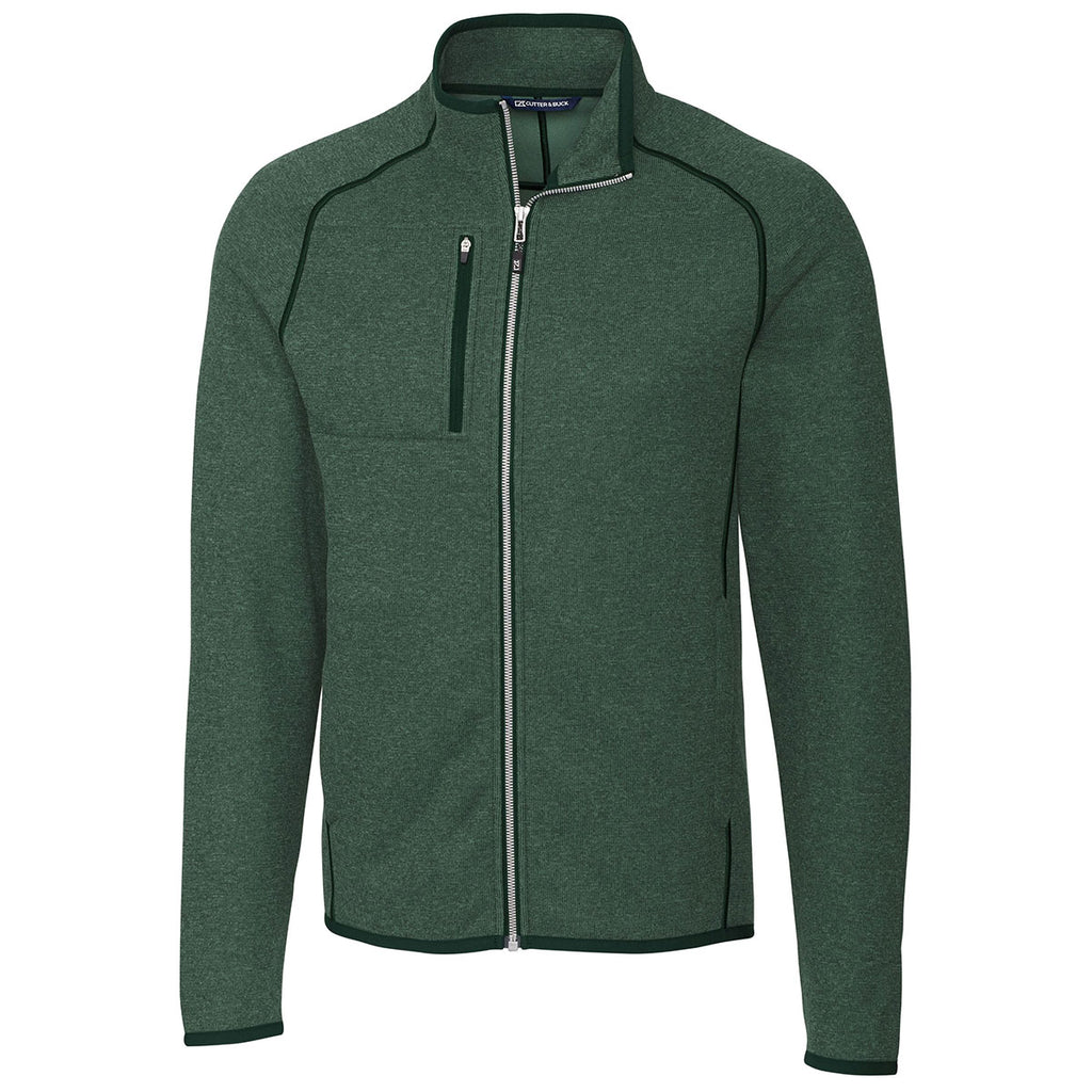 The Cutter & Buck Men's Hunter Heather Mainsail Jacket offers a modern style with ideal warmth. Add your custom logo to the front of the jacket and you can turn this already exceptional item into an advertising item for your company. This corporate apparel product is available in a variety of appealing colors with welcome features such as a 100% polyester material, sweater knit material, brushed fleece interior, mock neck full zip, zippered chest pocket, and CB logo at back yoke. This jacket makes an excellent employee apparel gift as well as to hand out as a giveaway gift at any upcoming corporate event.Highlights