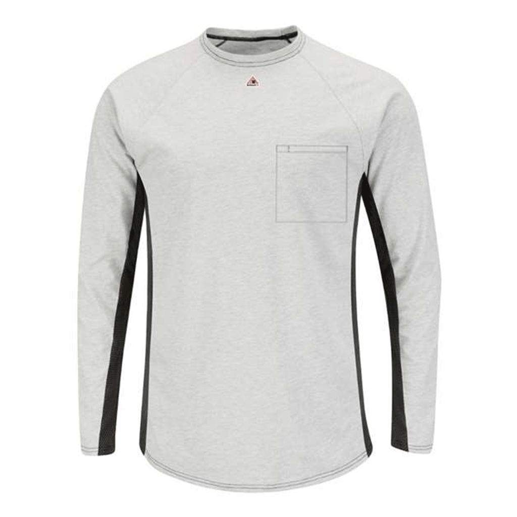 Bulwark Men's Grey Long Sleeve Flame Resistant Two-Tone Base Layer with Concealed Chest Pocket