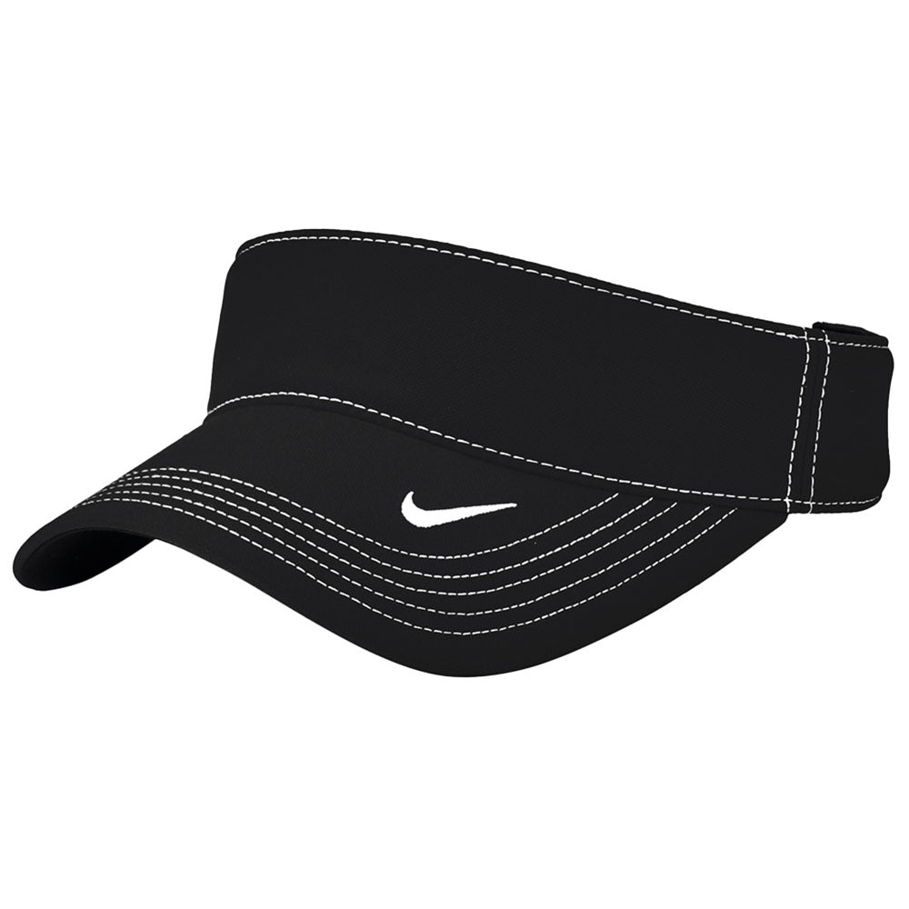 Add embroidery to the Nike Black Dri-FIT Ace Visor for a simple way to protect yourself from the sun. The high-performance three-panel visor offers Dri-Fit moisture management with a hook and loop closure for a one-size-fits-most style. Ideal for tennis, golf, or general outdor wear. Place an order today.This product cannot ship outside of the United States.