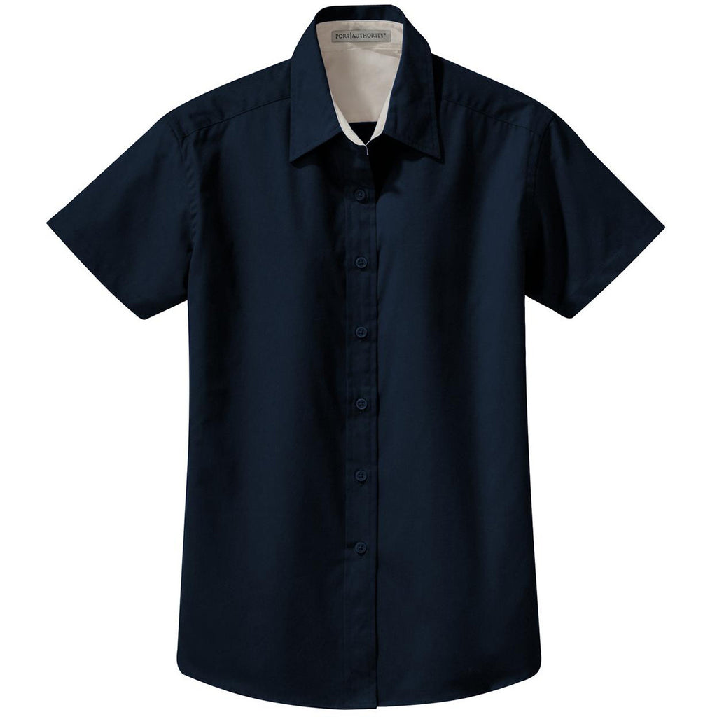 Want an employee uniform that looks good no matter the occasion or what hour of the shift you're on? Then allow us to introduce you to the Port Authority Women's Navy/Light Stone Short Sleeve Easy Care Shirt. Not only is this shirt lightweight (4.5 ounces), but it's breathable, thanks to a 55/45 cotton/poly blend. The traditional, relaxed look is thanks to the open collar and dyed-to-match buttons that steal none of your own custom embroidery or corporate logo's thunder. And the shirt is easy enough to care for and maintain that your employees will have no problem wearing it more than once a week.Corresponding Men's Style: Port Authority Men's Navy/Light Stone Short Sleeve Easy Care Shirt