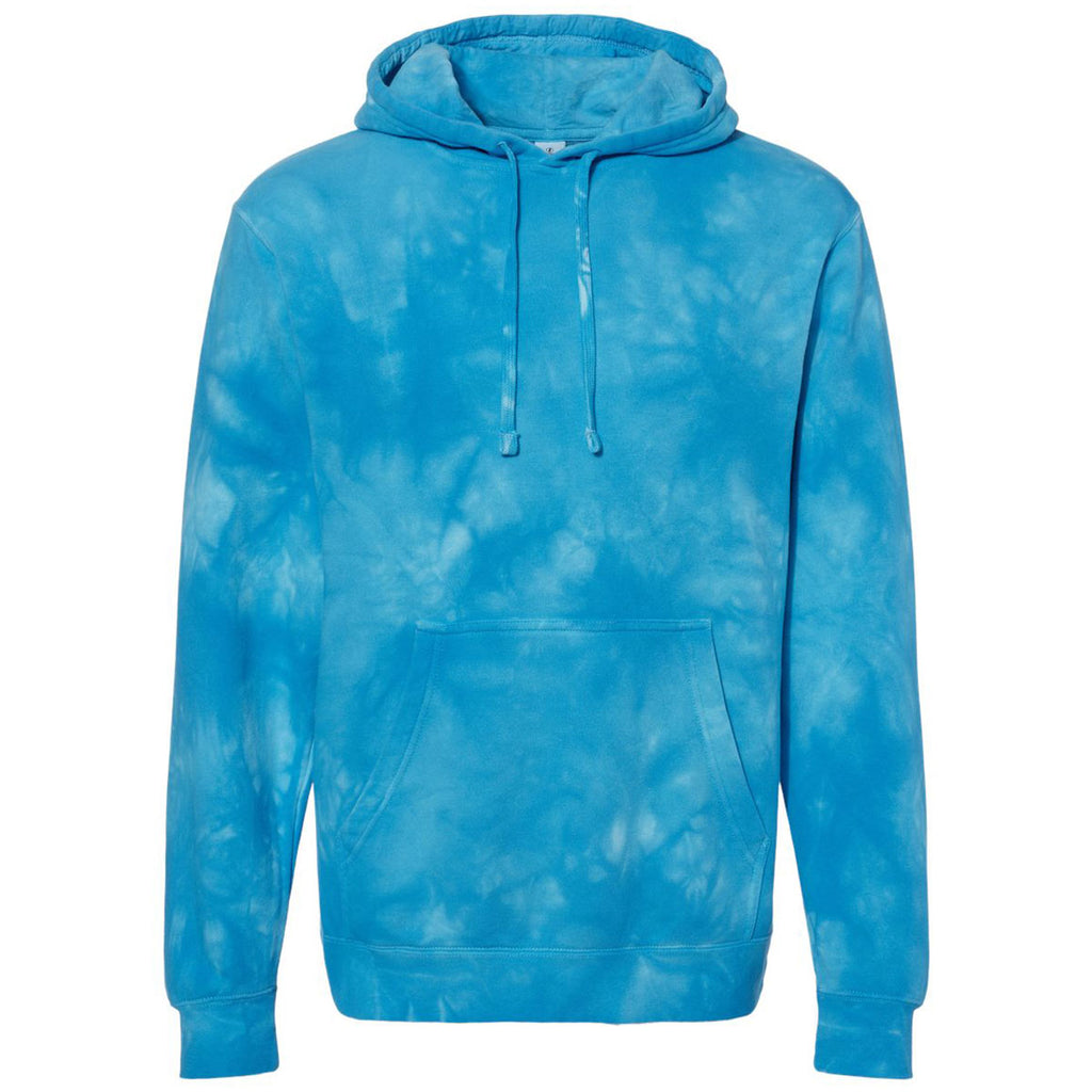 Make a statement by adding screen print to the Independent Trading Co. Unisex Tie Dye Aqua Blue Midweight Tie-Dye Hooded Sweatshirt with a standard fit. This bright, bold creation is made of a soft ring spun cotton and polyester blend with an attached jersey lined hood. Each garment is unique not just because of your custom logo, but because the tie-dying process creates subtle differences in each design. Stand out as you chill at home or head out into the world in this easy to layer sweatshirt that will keep you warm while getting you noticed.Highlights