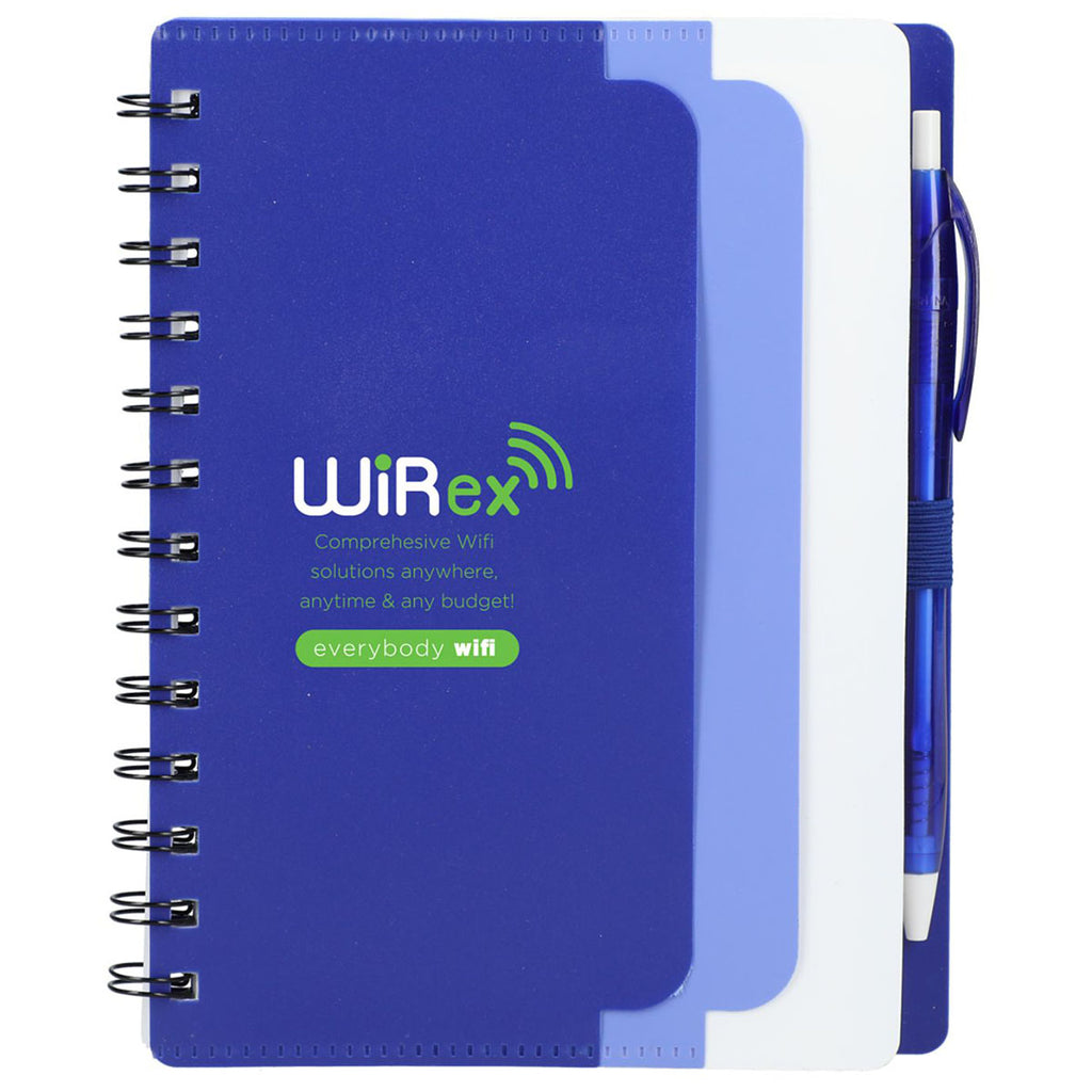 Bullet Purple Recycled Dual Pocket Spiral Notebook W/ Pen