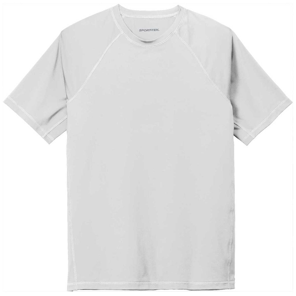Get ready to swim laps with a custom heat transfer Sport-Tek Men's White Short Sleeve Rashguard Tee. Made of a poly-rich and spandex stretch jersey, these tees were made to stretch and move with you while enjoying water activities. Add a custom logo to the high-performance tees to use for team events. The PosiCharge technology keeps the logo from fading, even while being involved in water sports. Add a company logo to those tees that will be used as company uniforms. Perfect for coaches, instructors, or even those who work with water animals. A UPF rating of 50 means that the wearer will be protected from the sun in this trim, comfortable fitting tee with raglan sleeves and underarm gussets.Corresponding Women's Style: Sport-Tek Women's White Short Sleeve Rashguard Tee