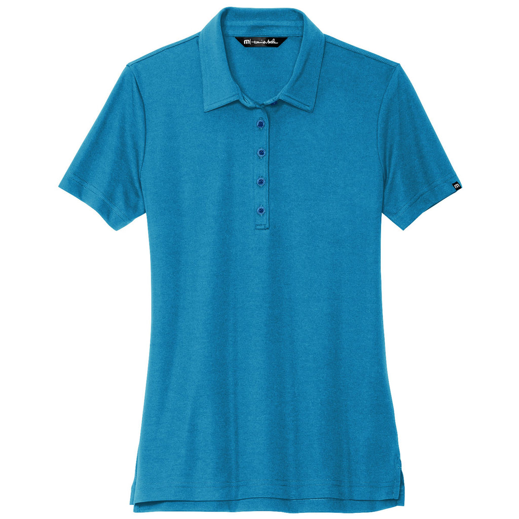 Meet the TravisMathew Women's Classic Blue Oceanside Solid Polo. This beach-inspired lounging polo was designed for comfortable every day wear. The moisture-wicking and wrinke-resistance technology blends an iconic style with the comfort capabilities of activewear. Keep cool from a busy day in the office to the afternoon golding trip. Reach out and add an embroidered logo to highlight any company