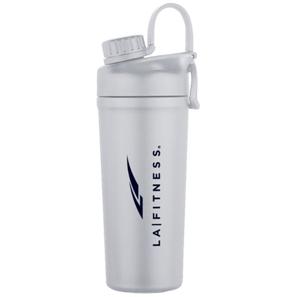 Corporate wellness campaigns shine with the Snugz USA White Topeka 26oz Vacuum Shaker. This stainless steel bottle features a built-in agitator and vacuum insulation to keep drinks cold for hours. Perfect for fitness studios or employee swag, it's a high-performance tool that shows your brand cares about hydration, health, and quality gear.The minimum order for this product is 25 pieces.