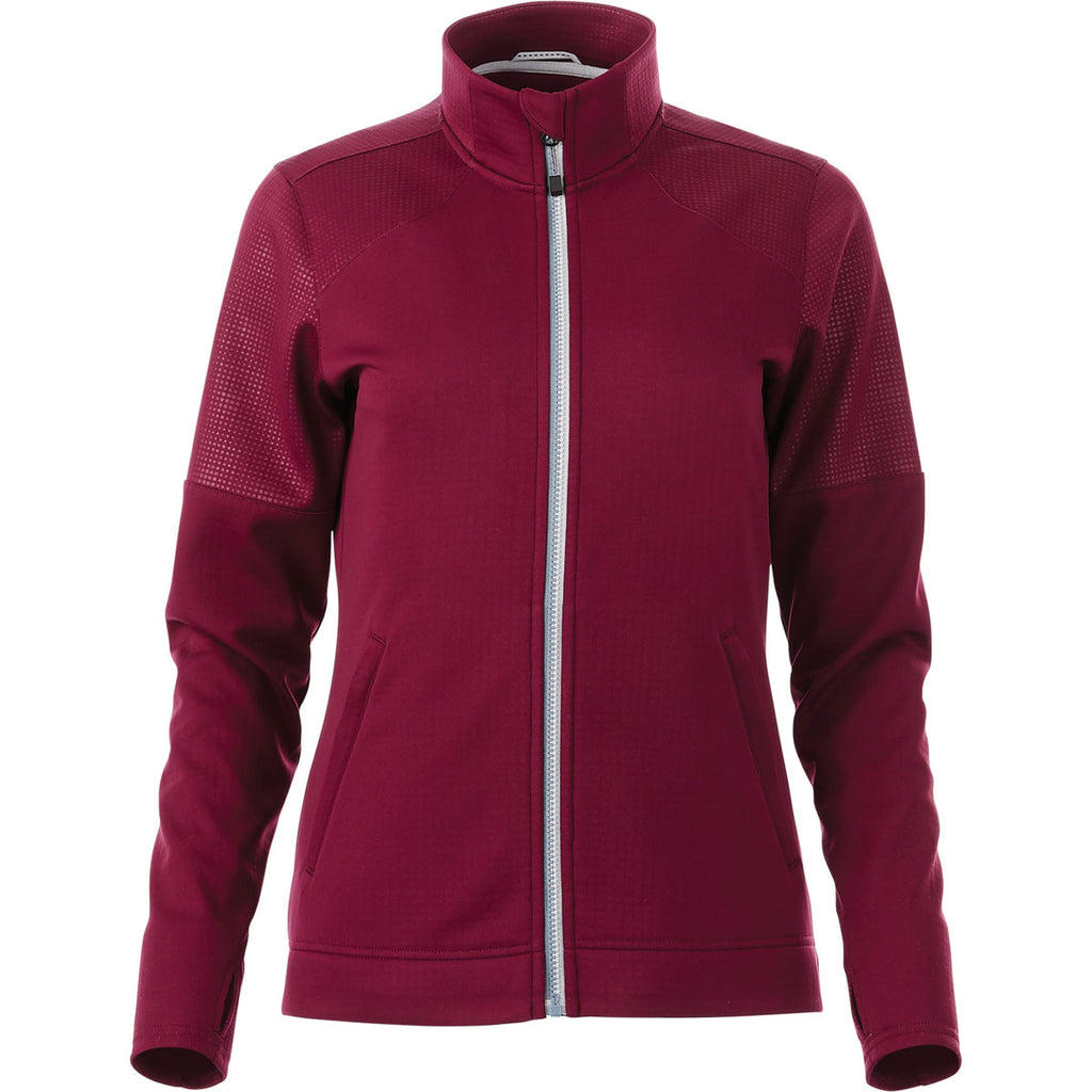Elevate Women's Maroon Senger Knit Jacket offers the perfect combination of fashion and functionality. Offered in popular colors, this 100% polyester interlock knit jacket will keep you protected against the cold weather whether you are headed to the park or the office. An interior flap with chin guard, earbud cord guide and exit, graphic detailing on the shoulder, and sleeve cuffs with thumb exit are just the extras to make this jacket the best. Add a custom logo or corporate embroidery to give as corporate gifts or to function as employee apparel. Order enough for each of your employees and top clients to show your appreciation!