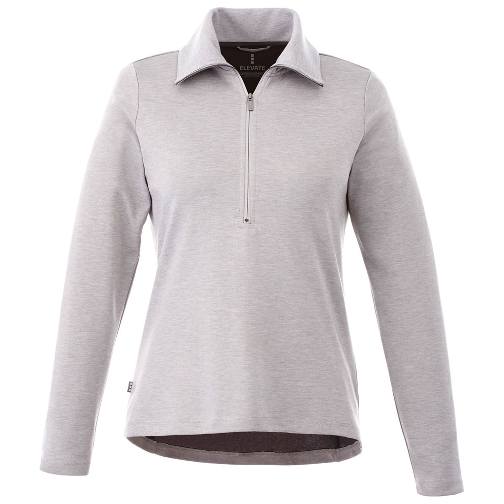 The Trimark Women's Heather Grey Stratton Knit Half Zip is an item which gives you that professional look and is perfect for branding with your custom company logo. Combined with other apparel items it looks casual and cozy. It is made of lightweight washable wool that makes it easy to wash and wear, and allows it to stay polished with snag resistance. It is available in four beautiful colors and is ideal for every modern woman who hates ironing. Include it in your next corporate giveaway and show your female employees you appreciate their hard work and dedication.Corresponding Men's Style:Elevate Men's Heather Grey Stratton Knit Quarter Zip