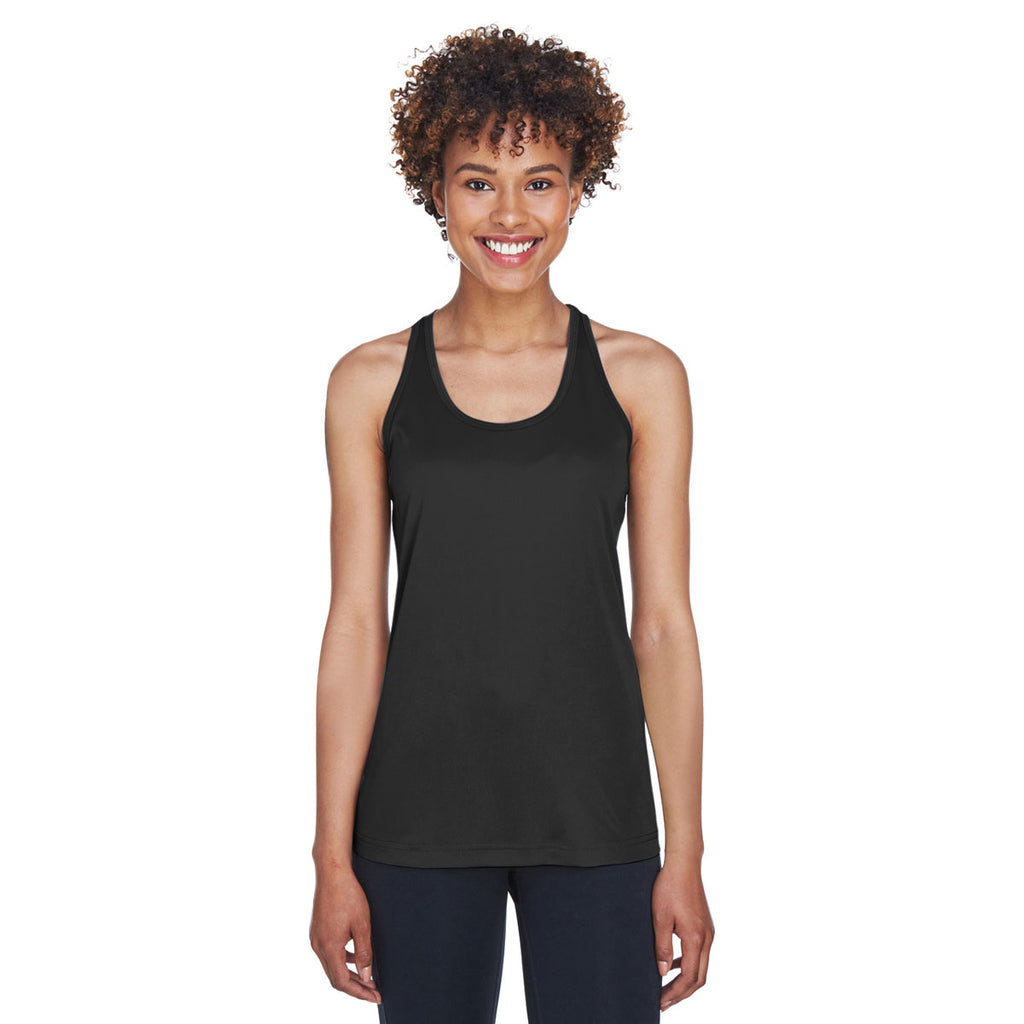 Style and design meet functionality with the Team 365 Women's Black Zone Performance Racerback Tank. Working outside can be tiring, why not allow your employees to enjoy their screen print employee apparel a bit more with a moisture wicking, sleek racerback design that will keep them cool and comfortable while giving their best. Perfect for nearly all outdoor activities, including trade shows, this custom logo t-shirt is available in many colors that you choose. Design a customized logo that showcases your company's unique products. Order several to offer as gifts at corporate events or use as warm weather uniforms for employees, the possibilities are endless.Corresponding Men's Style: Team 365 Men's Black Zone Performance Muscle T-Shirt