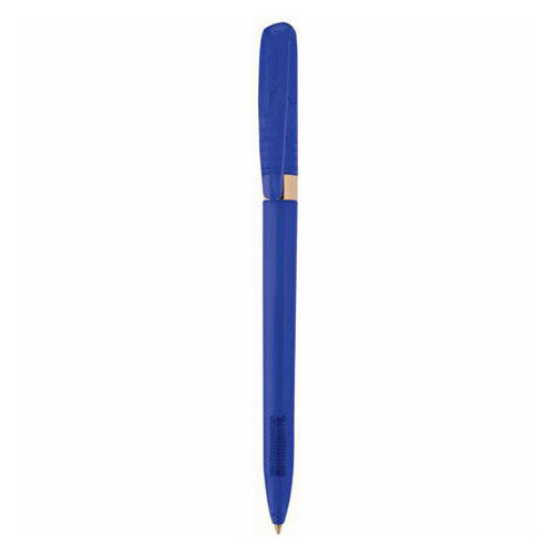 Brighten up the workspace of customers and patrons in your corporate circle with BIC Blue Pivo Clear Gold Pen from BIC. Gold plated ring lends elegant shine to this promotional pen and ensures your logo wins people's attention. Its sleek, slim and clear profile let your company's name and contact information printed in a vibrant, eye-catching display!