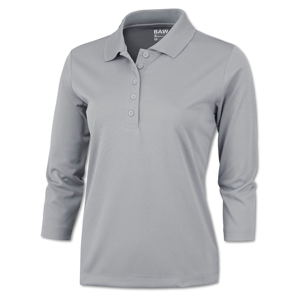 How many times have you heard that sleeves are too short or too long? If you have a company store or want to give women customers a garment that is practical as well as attractive, then consider our BAW Women's Silver Xtreme Tek 3/4 Sleeve Polo. This polyester version has a front placket with five buttons that are the same color as the shirt. Your custom logo will be well placed on this polo that will become a favorite of the ladies. They will appreciate the fabric that has fresh assurance with an anti-bacterial treatment. There are many fashionable colors in sizes XS to 3X.Highlights
