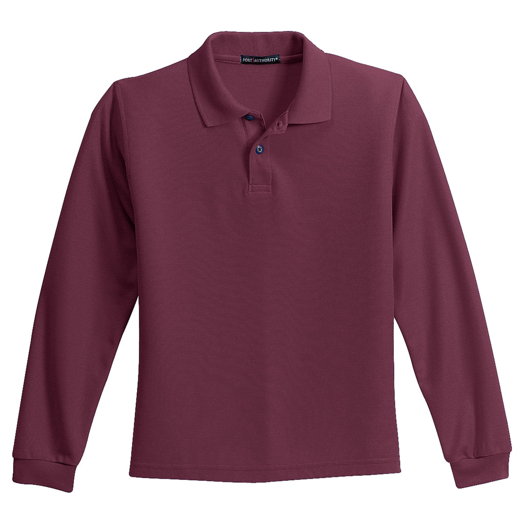 Port Authority Youth Burgundy Long Sleeve Silk Touch Polo