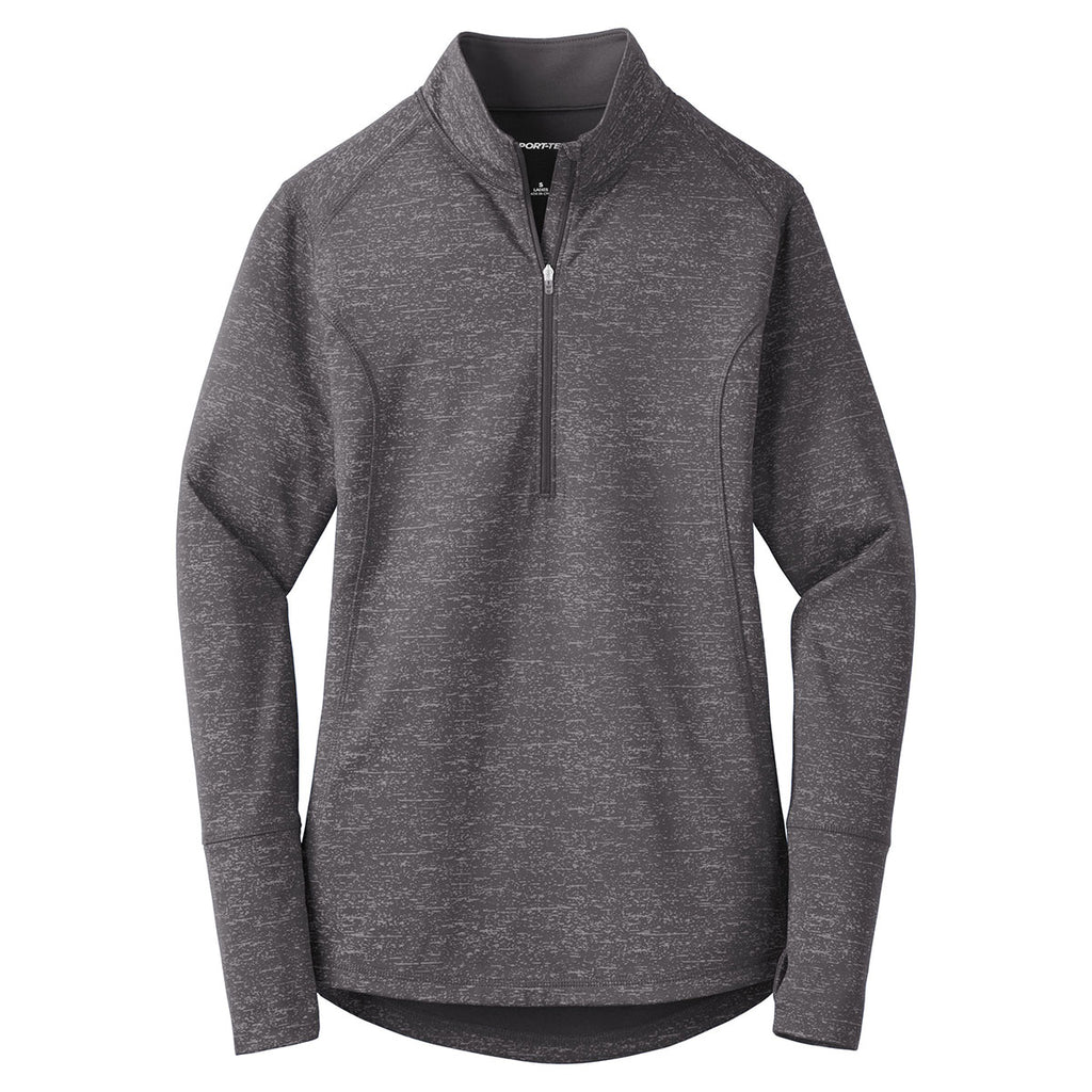 Sport-Tek Women's Charcoal Grey Sport-Wick Stretch Reflective Heather 1/2-Zip Pullover