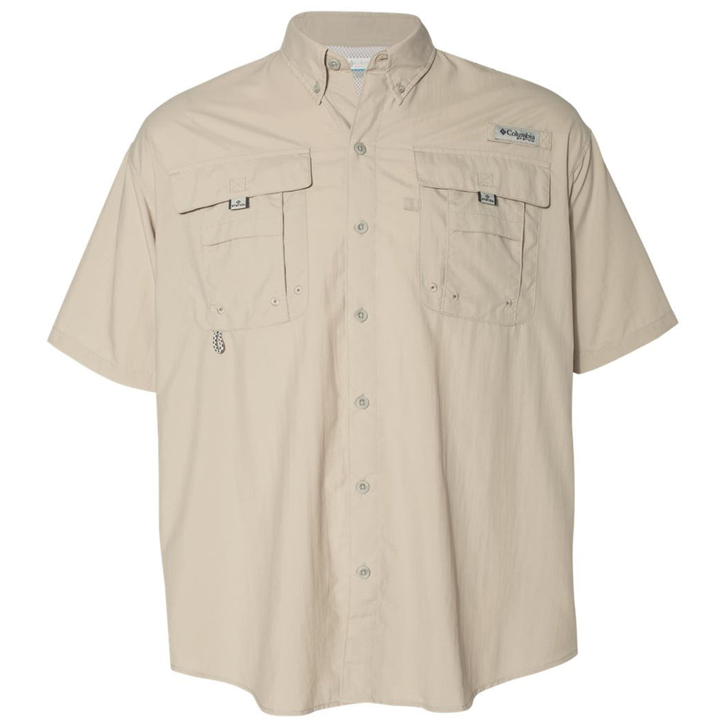 A custom Columbia Men's Fossil PFG Bahama Short Sleeve Shirt is ready for work, play and everything in between. The Tactel nylon shirt with quick dry technology and UPF 50 sun protection has a rod holder and utility loop so you can work all morning and fish the afternoon away with ease. Great for outdoorsmen of all types.