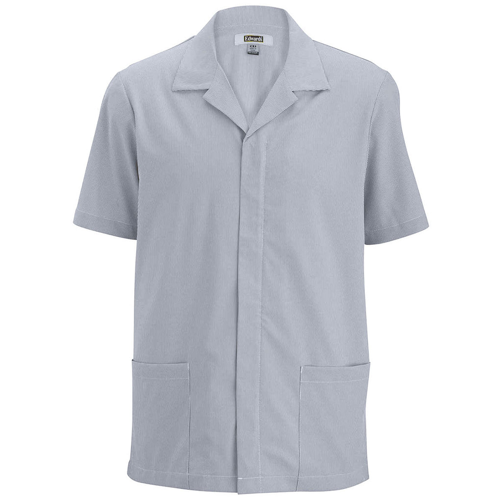 Embroidery will look amazing on the Edwards Men's Steel Grey Pincord Pincord Ultra-Stretch Tunic that can easily be used as a uniform or employee apparel with ease. The traditional fit of this tunic with an open collar and hidden zipper placket creates a well put together look that can be worn over almost any type of top. Perfect for those in almost any service industry, the moisture wicking fabric can be laundered industrially with ease after a hard day's work. Try a custom logo to add these to your logoed apparel selection to maintain continuity in a company.Highlights