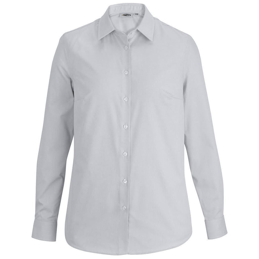 Choose your embroidery for the Edwards Women's Silver Pinpoint Oxford to enjoy a lightweight professional look that will turn heads. The tailored fitting oxford offers light stripes for an eye-pleasing look. Add a company logo to use as corporate apparel or as employee apparel that will have employees looking polished and professional. The wrinkle free fabric looks great even when your hours are long and the spread collar has permanent stays to maintain appearances. Princess back seams and a curved hem on the machine washable oxford gives this long sleeve shirt a feminine flair that can be worn alone or paired with a sweater or blazar.Highlights