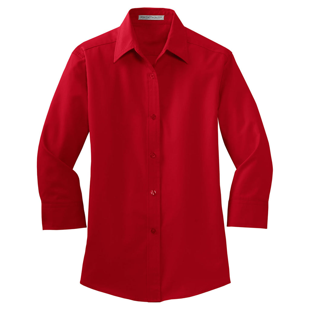 Port Authority Women's Red 3/4-Sleeve Easy Care Shirt