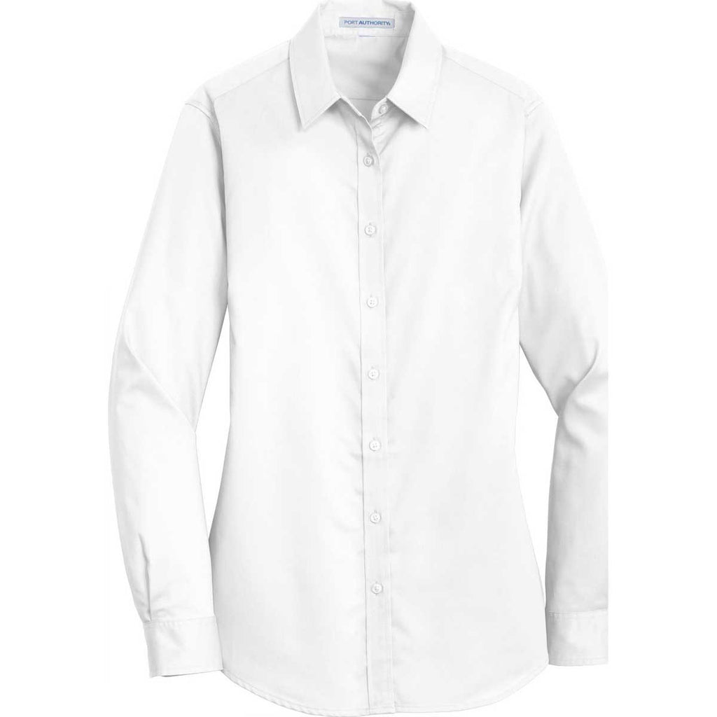 Dress shirts often succumb to unsightly wrinkles, which gives you a less than professional appearance. The Port Authority Women's White SuperPro Twill Shirt resists wrinkles to maintain your stylish appearance throughout a busy day. Constructed with 55% cotton and 45% polyester, the Women's twill shirt also quickly removes stains. Dyed-to-match buttons complement the sleek design of the shirt. Attach your corporate logo to the large imprint area for creating an inexpensive way to get the word out about your business. The addition of a corporate logo makes the Port Authority Women's White SuperPro Twill Shirt an excellent company gift for loyal customers and high achieving employees.Corresponding Men's Style: Port Authority Men's White SuperPro Twill Shirt