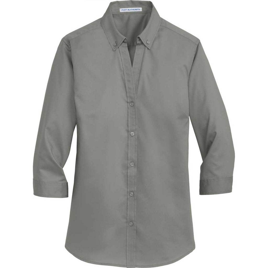 Port Authority Women's Monument Grey 3/4-Sleeve SuperPro Twill Shirt
