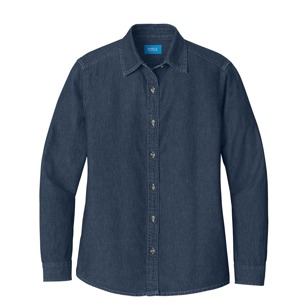 Port & Company Women's Ink Blue Long Sleeve Value Denim ShirtHighlights
