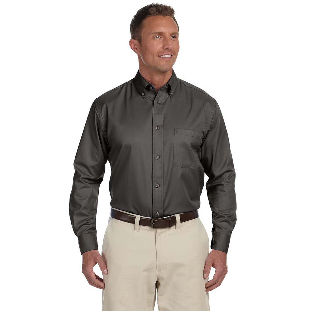Harriton Men's Dark Grey Tall Easy Blend Long-Sleeve Twill Shirt with Stain-Release