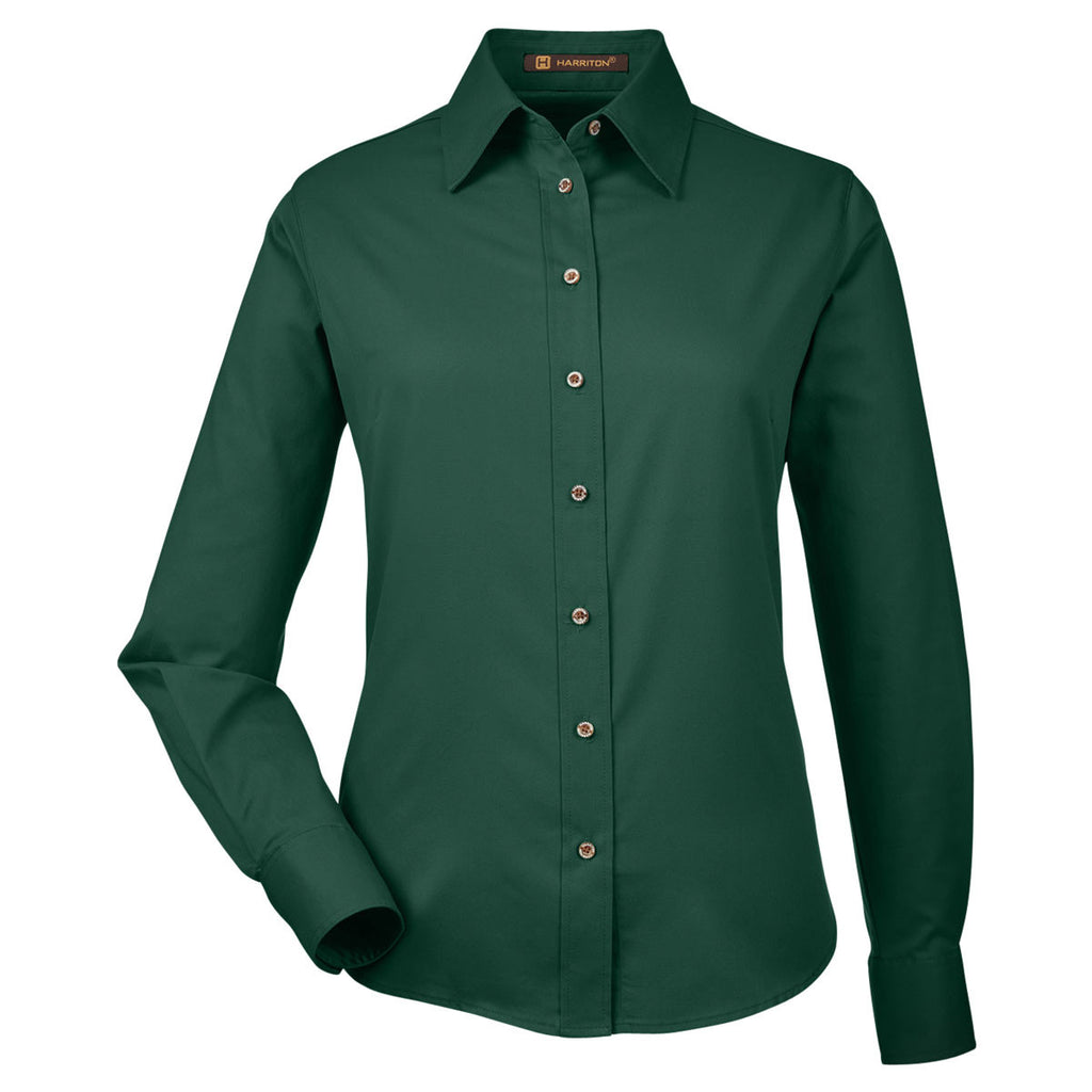 Harriton Women's Hunter Easy Blend Long-Sleeve Twill Shirt with Stain-Release