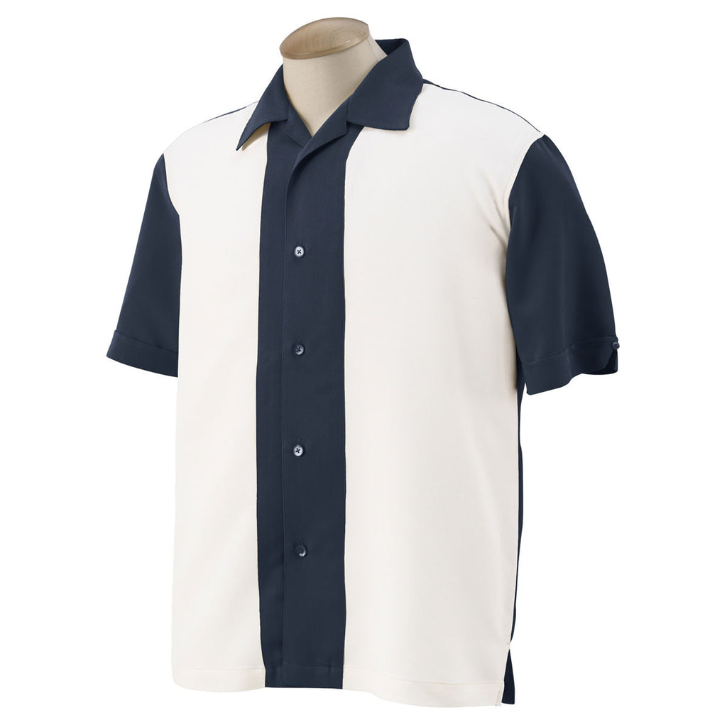 Harriton Men's Navy/Creme Two-Tone Bahama Cord Camp Shirt