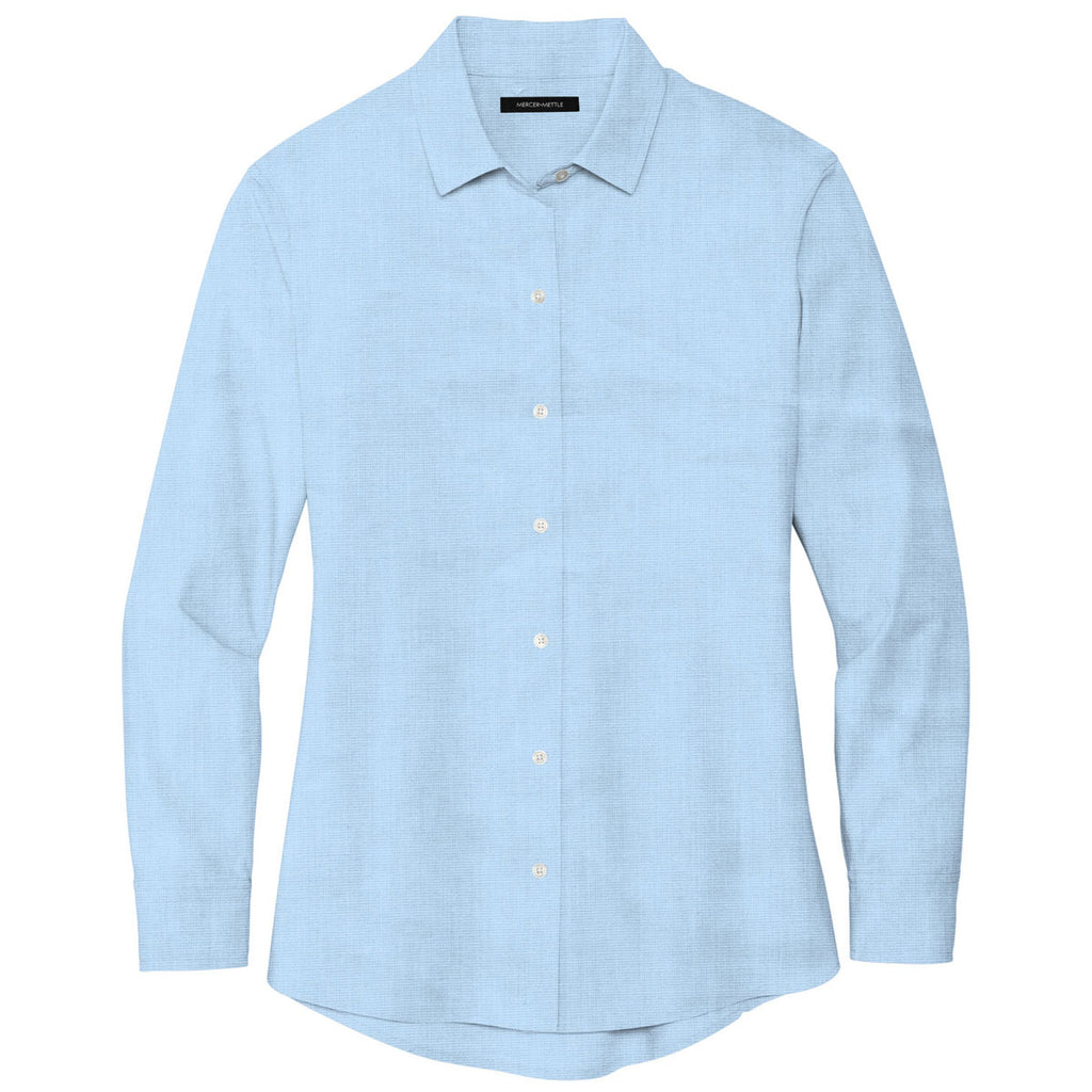 Mercer+Mettle Women's Air Blue End On End Long Sleeve Stretch Woven Shirt with embroidery is the corporate and business clothing option that won't break the bank. Add a custom logo to the long sleeve button up to pair with a suit, slacks, or skirt to enjoy a high end look that is stylish, modern, and professional. Place an order right away.Corresponding Men's Style: Mercer+Mettle Men's Air Blue End On End Long Sleeve Stretch Woven Shirt