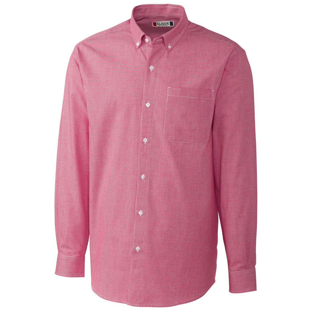 Clique Men's Red/White Long Sleeve Granna Stain Resistant Houndstooth Shirt