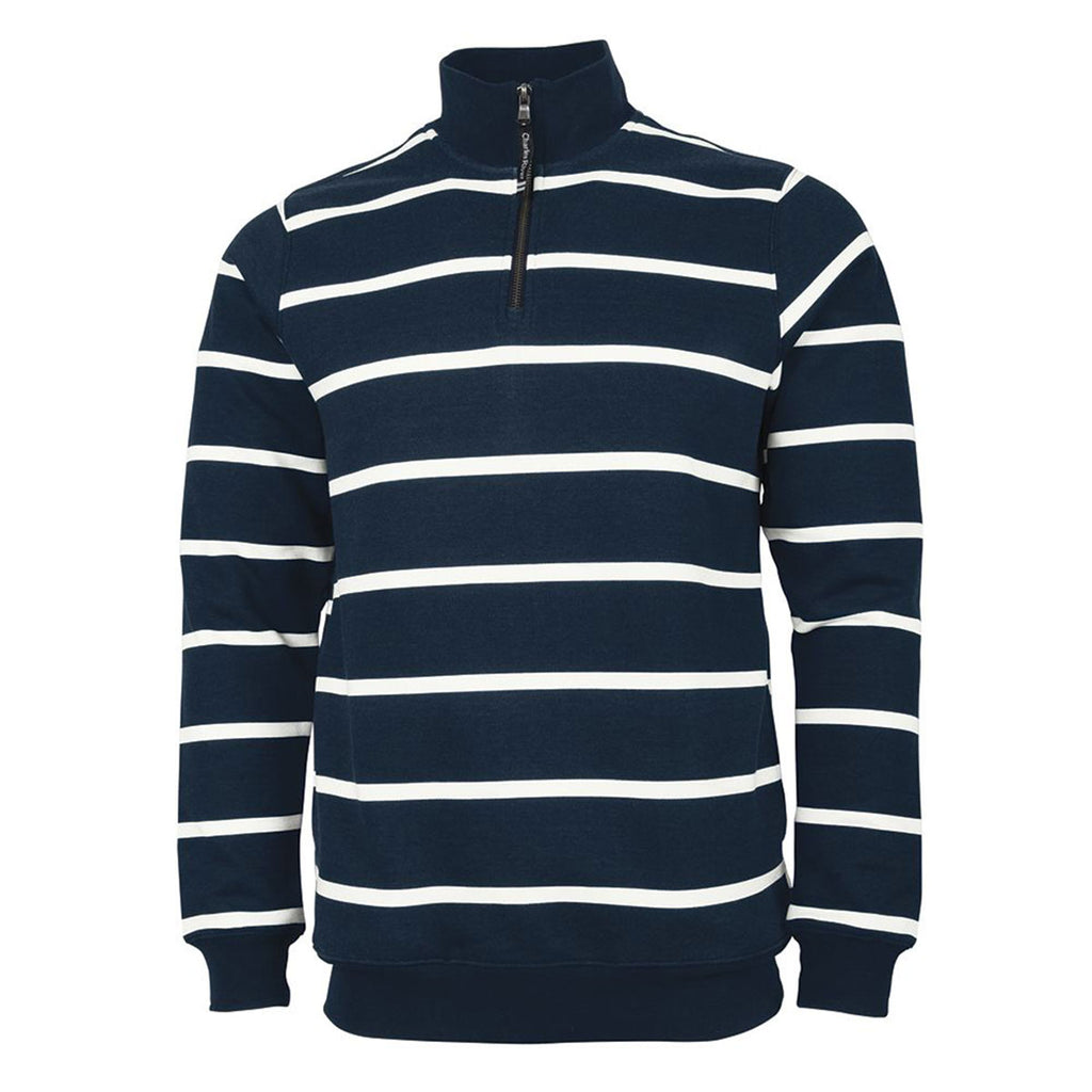 The Charles River Women's Navy/white Stripe Crosswind Quarter Zip Print Sweatshirt is sharp custom clothing that can represent your company well with the addition of your logo. Workers in various roles can wear this logoed apparel as part of a company uniform. The horizontal stripes can help draw the eye to your logo, which will help promote your company name. For even more brand-name exposure, you could sell this apparel to the general public if your business is widely known and your logo is universally recognized. It's also a nice promotional item to hand out at recruiting events if you want a little edge when trying to attract top talent.