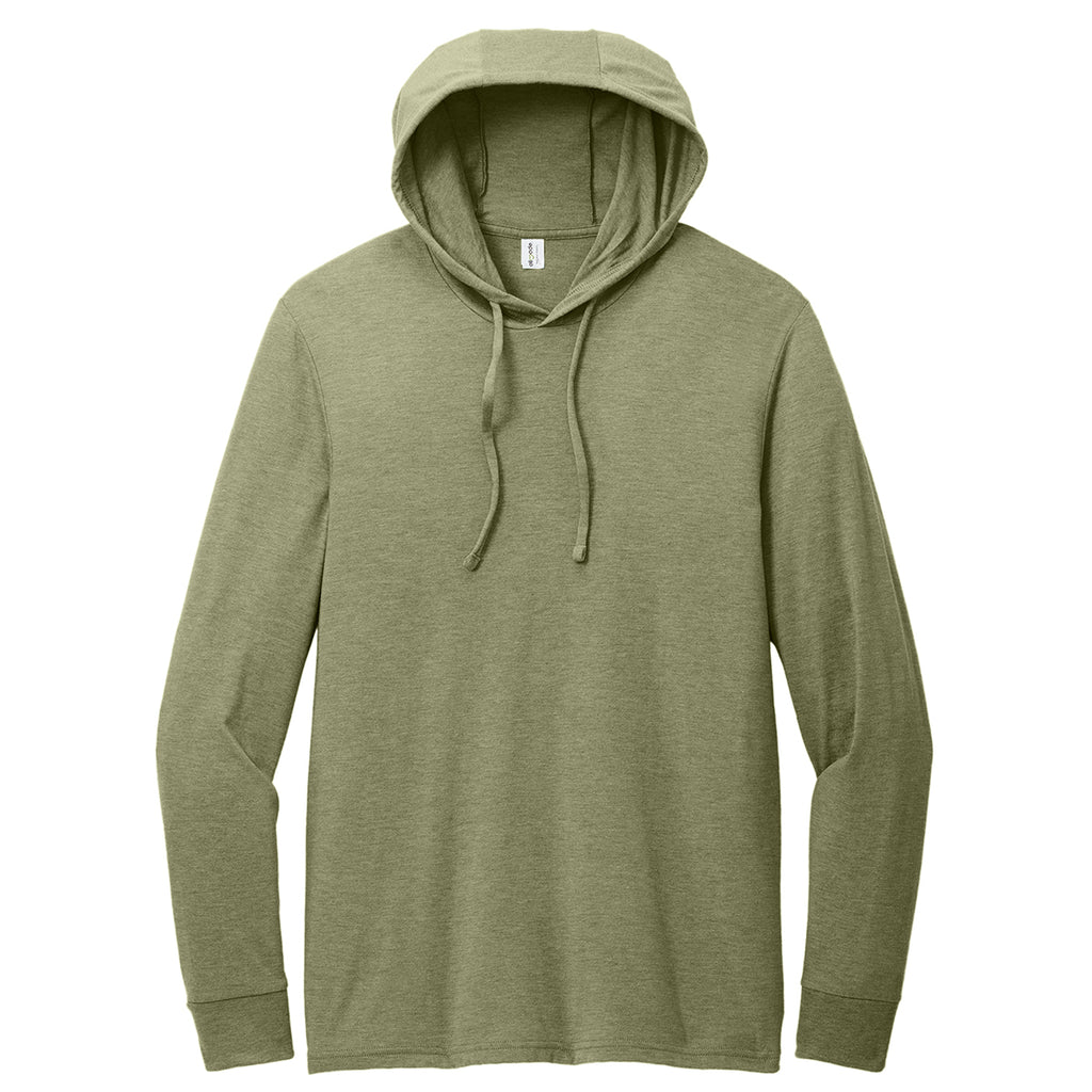 Allmade Unisex Olive You Green Tri-Blend Hoodie Tee with a custom logo is a stylish option for the person on the go. This long-sleeve hoodie tee is eco-friendly and lightweight for all-day wear. Perfect for chilly mornings while going for a run, working out, or simply creating a laid-back look with a bit of edge.Highlights