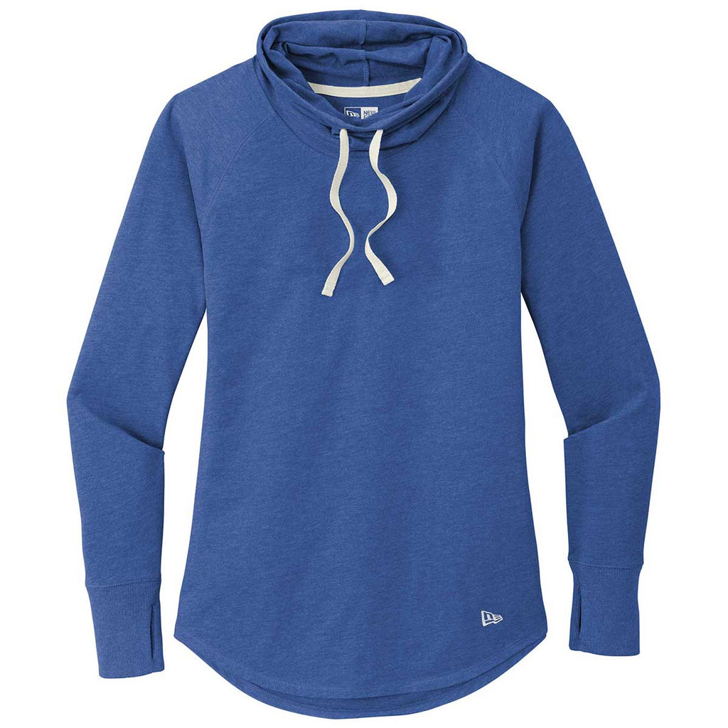 Head out for a morning jog or to that morning meeting in comfort with a custom New Era Women's Royal Heather Sueded Cotton Blend Cowl Tee. Made of a combination of sueded ring spun cotton and poly, this tee will look great with the screen print of your choice. The relaxed fit of this long sleeve tee means comfort all day. Small additions like contrast twill drawcords, rib knit cuffs, a curved drop tail hem, and thumbholes create a unique look for this tee that would serve well as an end of the year gift with a company logo. Your screen print will stand out whether used as company uniforms or employee gifts that will be a real hit.