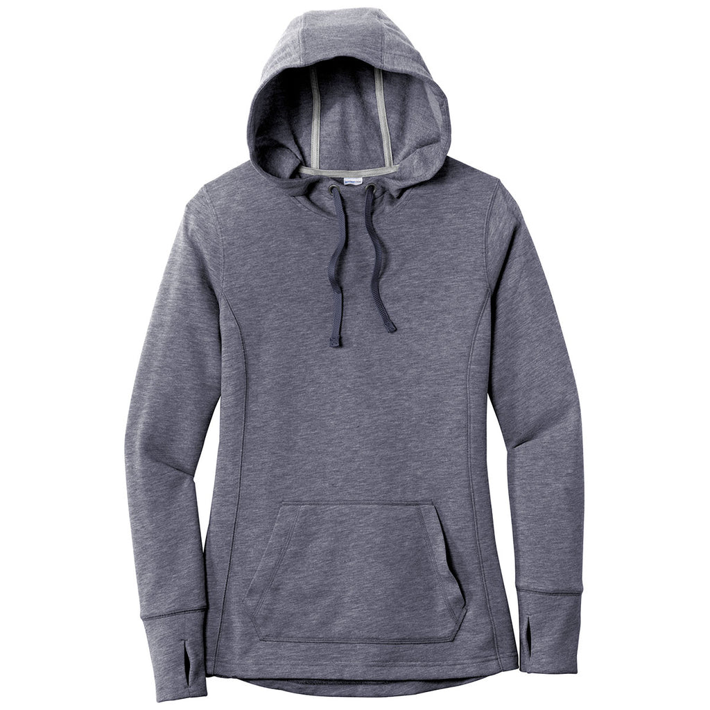 Sport-Tek Women's True Navy Heather PosiCharge Tri-Blend Wicking Fleece Hooded Pullover