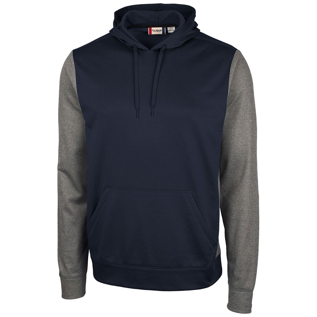 The Clique Men's Dark Navy Helsa Sport Colorblock Pullover combines fashion and comfort in one eye-catching pullover sweatshirt. With a custom logo added in screen print, you can turn this comfortable sweatshirt into an advertising product as well. Features include a variety of classic color options, 100% polyester fleece material, long sleeve cuffs in heather fabric, hood with drawstring, and kangaroo pocket. Purchase this item to use as prizes for corporate golf events or to hand out at recruiting events. You may want to buy some extra ones to hand out to your loyal employees, too.Corresponding Women's Style:Clique Women's Dark Navy Helsa Sport Colorblock Pullover