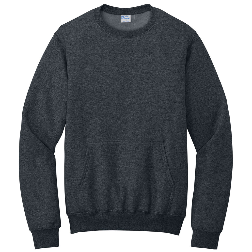 Port & Company Unisex Dark Heather Grey Core Fleece Crewneck Pocket Sweatshirt