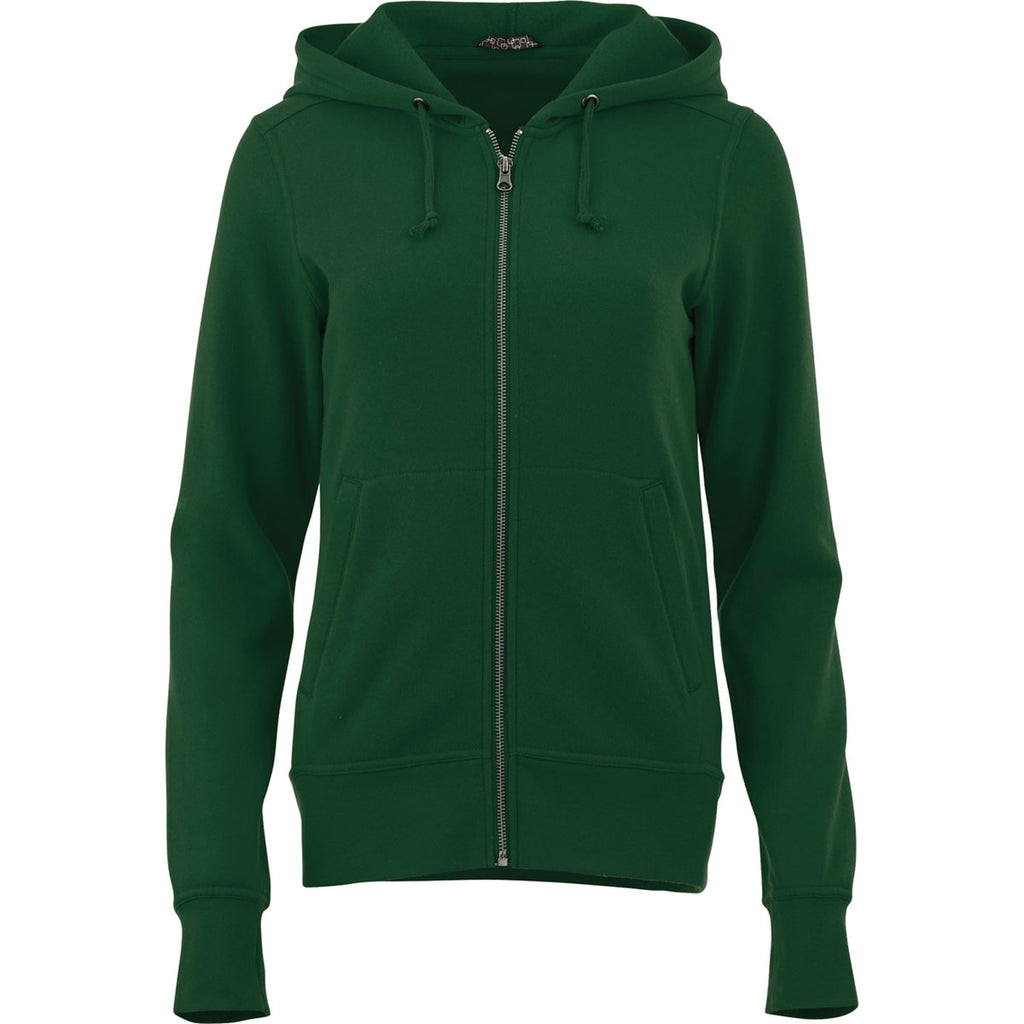 Corporate promotion in a winter means its time for hoodies in warm colors that help to pull the wearer's look together in an effortless manner. Custom logoed hoodies are a popular-priced medium to advertise your company or business because they are staple pieces of a winter wardrobe. Designed to inject energy into workout casual repertoire with all the warmth and without the bulk, this Elevate Women's Forest Green Cypress Fleece Zip Hoody is crafted from a comfy cotton-poly blend. It features exclusive branding opportunities, including an area to add your logo inside the back yoke and tear-away label, allowing you to create a special custom giveaway gift. Create a fantastic winter giveaway and spread awareness of your brand by customizing this hoodie with your company's logo.Corresponding Men's Style:Elevate Men's Forest Green Cypress Fleece Zip Hoody