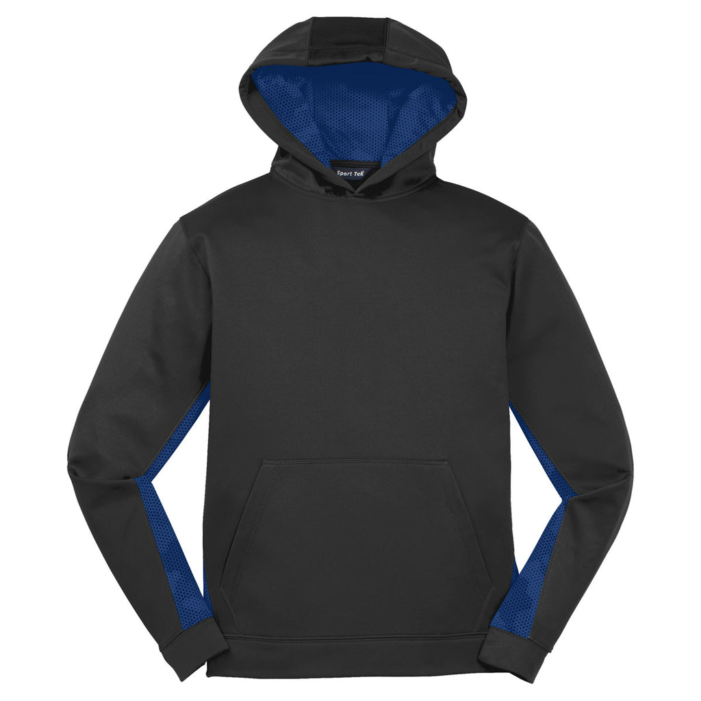 Sport-Tek Youth Black/True Royal Sport-Wick CamoHex Fleece Colorblock Hooded Pullover