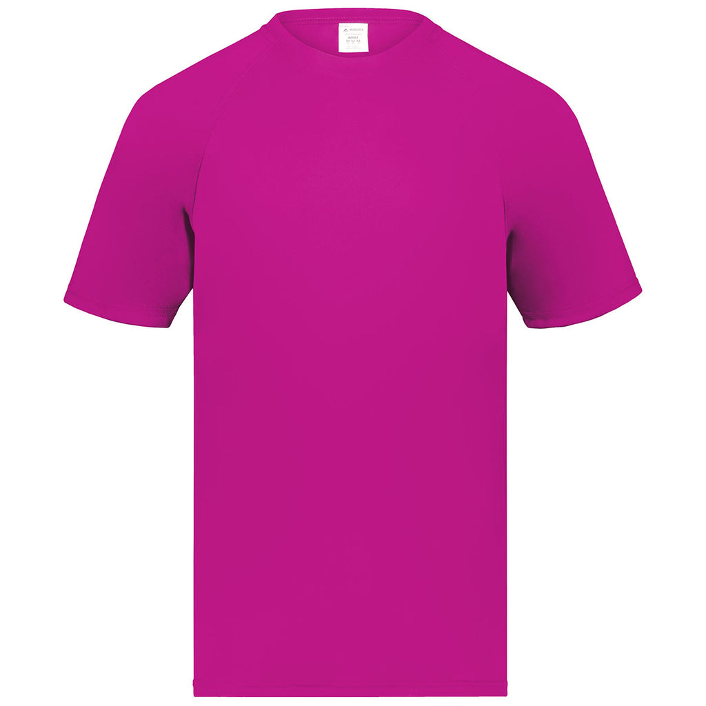 The company logo Augusta Sportswear Men's Power Pink Attain Wicking Short-Sleeve T-Shirt is comfort and style, all rolled into one eye-catching sports t-shirt. Available in 22 vivid colors, you can select a color scheme which makes your company screen print logo look even better. Some of the must-have features which you'll find with this men's t-shirt include a 100% polyester wicking knit fabric, True Hue technology to prevent dye migration, pad print label, self-fabric collar, and comfortable raglan sleeves. This t-shirt makes an excellent option for employee apparel for casual days or for handing out as gifts at upcoming trade shows and corporate golf events.Highlights