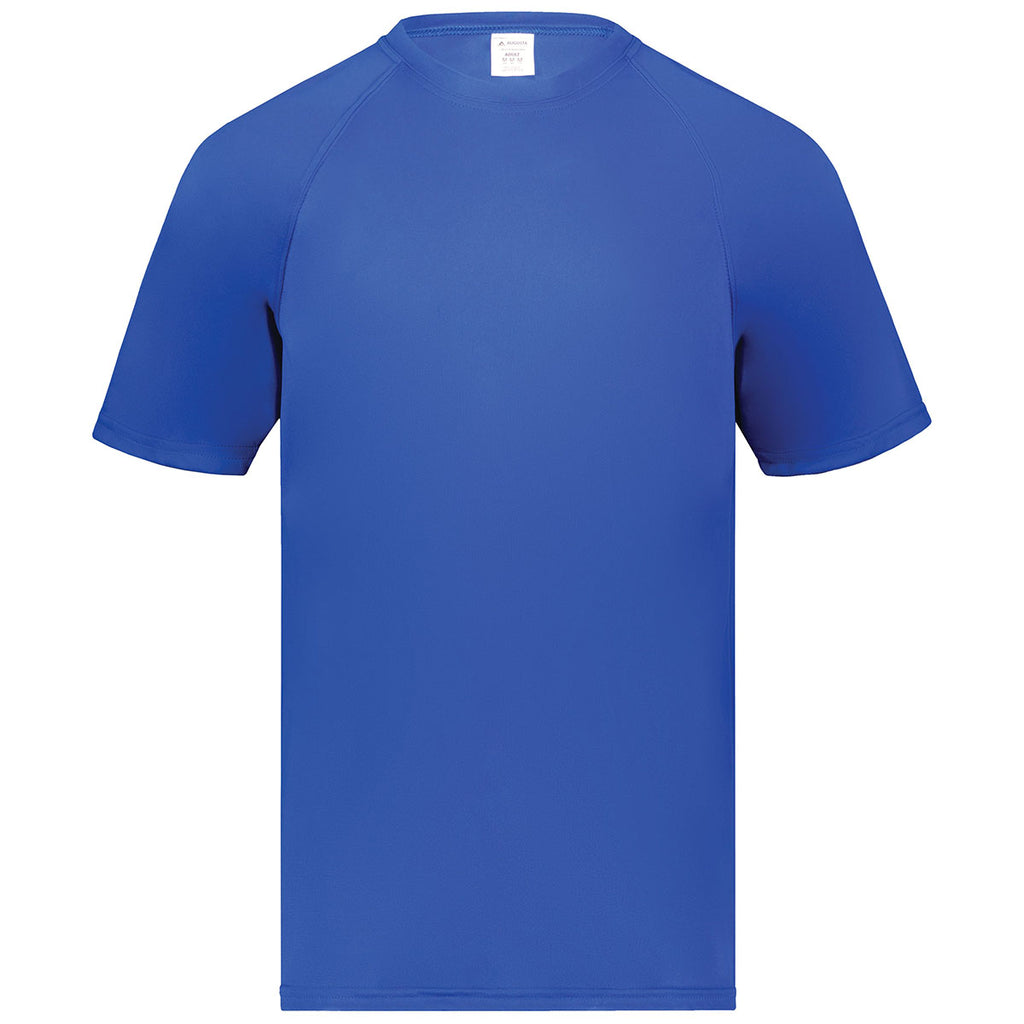The company logo Augusta Sportswear Men's Royal Attain Wicking Short-Sleeve T-Shirt is comfort and style, all rolled into one eye-catching sports t-shirt. Available in 22 vivid colors, you can select a color scheme which makes your company screen print logo look even better. Some of the must-have features which you'll find with this men's t-shirt include a 100% polyester wicking knit fabric, True Hue technology to prevent dye migration, pad print label, self-fabric collar, and comfortable raglan sleeves. This t-shirt makes an excellent option for employee apparel for casual days or for handing out as gifts at upcoming trade shows and corporate golf events.Highlights