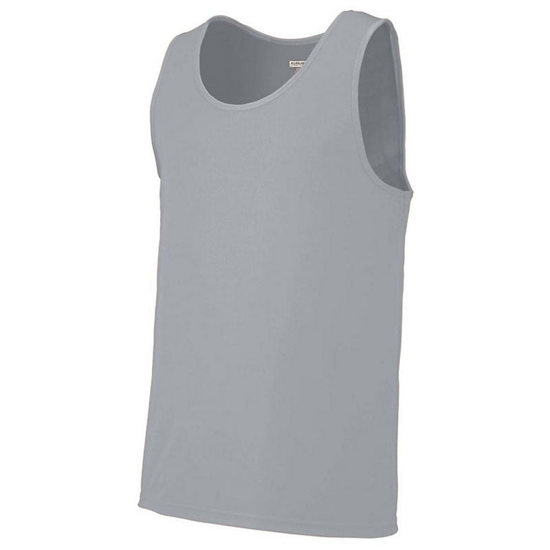 The custom logo Augusta Sportswear Men's Silver Grey Training Tank provides a comfortable fit, with your choice of 17 vibrant colors from which to choose your favorite. The features of this tank top make it a sure bet, with attributes such as moisture-wicking capabilities, heat sealed label, self-fabric binding around the neck and armholes, and a double-needle hem bottom. Add your company screen print logo to the front of this men's training tank top and you have an excellent giveaway gift option for upcoming corporate events, such as trade shows, recruiting events and golf events.Corresponding Women's Style: Augusta Sportswear Women's Silver Grey Training Tank