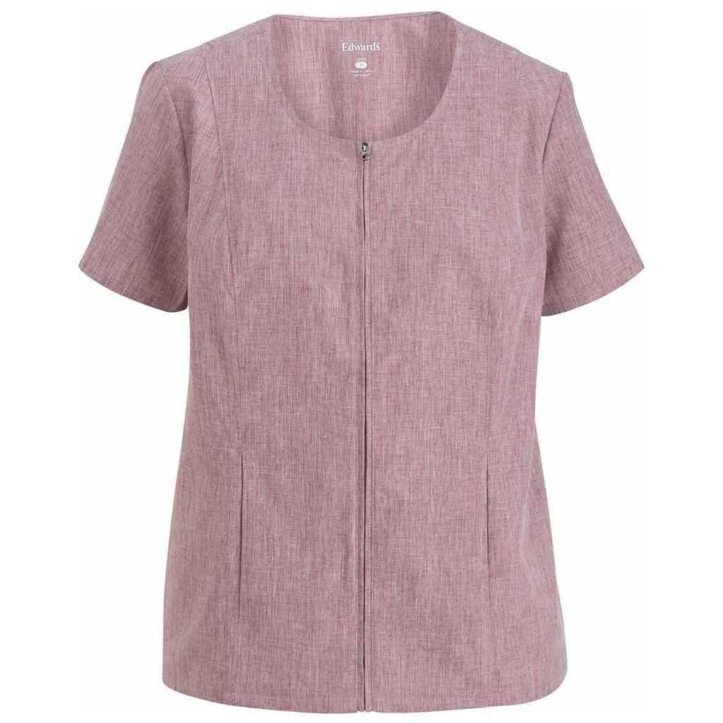 Edwards Women's Burgundy Heather Melange Ultra-Light Full-Zip Tunic with embroidery is an ultra-light tunic that can easily serve as a uniform. Whether working in a spa, housekeeping or helping others, this comfortable, soil-release tunic is a must-have. The full zip front makes it easy to layer over your clothes. Place an order today.Highlights