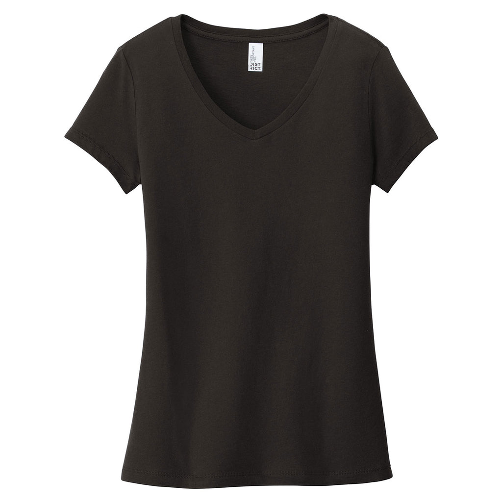 You do not need to wear a tux to feel very important, when you order the decorated District Women's Black Very Important Tee V-Neck. The fashionable short sleeve shirt features shoulder to shoulder taping that presents a professional appearance for job candidates attending recruiting events. Attach a custom logo to raise the bar for marketing products and services at industry trade shows. Super soft 100% ring spun combed cotton resists rips and tears to give you go to corporate apparel for years to come. The slightly slimmer body and shorter sleeves make the tee v-neck perfect for active outdoor enthusiasts.Highlights